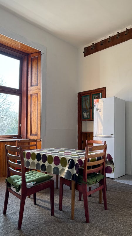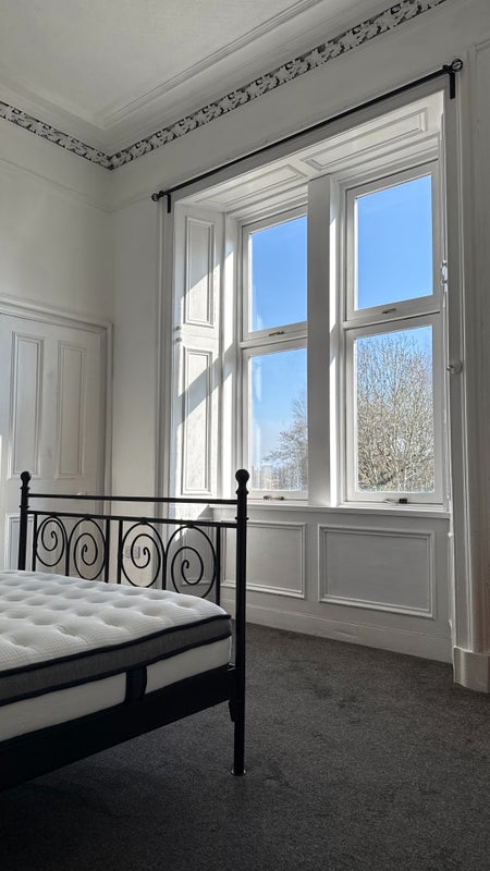 Ideally situated, furnished double bedroom in a large sandstone house near Queens Park in the vibrant south side of Glasgow. Cathkin Road is a quiet leafy suburb with ample street parking available.