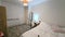 Each room includes bed, desk, chair, mirror, shelves, wardrobe, drawer, blinds, shade and other furniture.