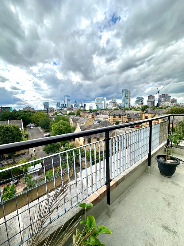 Riverside, top floor wrap around balcony with beautiful views of the City and Thames.