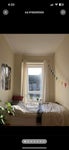 The kitchen is well equipped with all kitchen supplies needed (even a dishwasher!!), a laundry machine, plenty of shelf space and a large dining table for hosting or eating together. The living room is spacious and faces south as well. It has a TV, two comfy armchairs and a couch.
