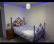 Double bedroom to rent, furnished with storage and TV. There is parking on the drive at the front of the house, a shared bathroom upstairs and also another shower room downstairs. There is a shared living room and kitchen/ dining area with a utility room off the kitchen. We have a large garden that looks across fields. You can walk to the town in 7mins there are busses to Gloucester.