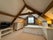 A large fully furnished double bedroom with exposed beams and views across the Shortwood Valley, Nailsworth.