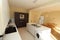 The modern kitchen is sleek and fully equipped, 3 full bathrooms and one toilet sharing.