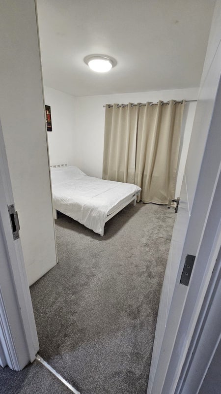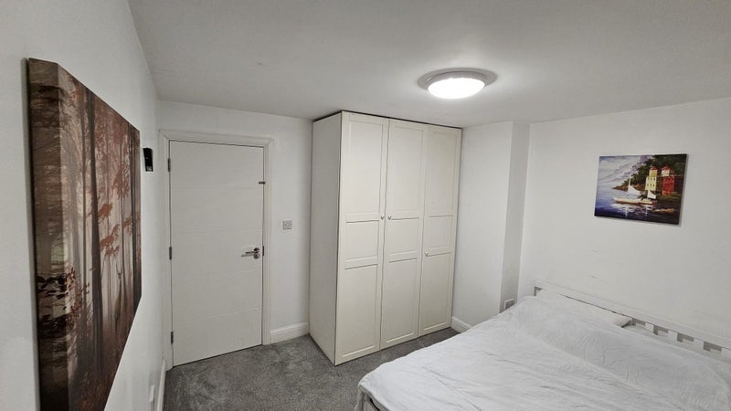 Large double bed with plenty of wardrobe space in a 4 bedroom flat with 3 bathrooms.