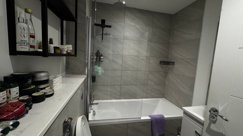 The flat itself is a new build in a good area, and less than two years old. We were the first tenants in, so it's all still immaculate and comes with full ammentities - washing machine, tumble dryer, dishwasher, induction hobs, plus plenty of cupboard and storage space. We're on the second floor the building itself and there's also a bike store on the groundfloor, with access to the building via keyfob for security and mailboxes by the front door.