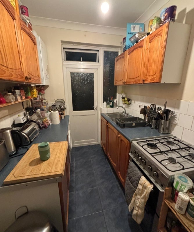 Three-bed terraced house, with a separate bright living room, built in storage in the hallways, and a private back garden leading out from the kitchen and the living room, 1 bathroom and w/c separated. There is a small spare room, which has been used for working space, and laundry. There is no wheelchair accessibility as the gate is narrow, the house has a front step and the bathroom and w. c are on the top floor