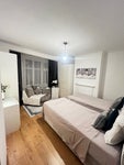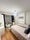 A lovely seating area by the window adds extra comfort, perfect for reading or unwinding. The room benefits from natural light during the day and a calm, cozy atmosphere in the evening. The wooden flooring and soft décor create a peaceful and homely feel.