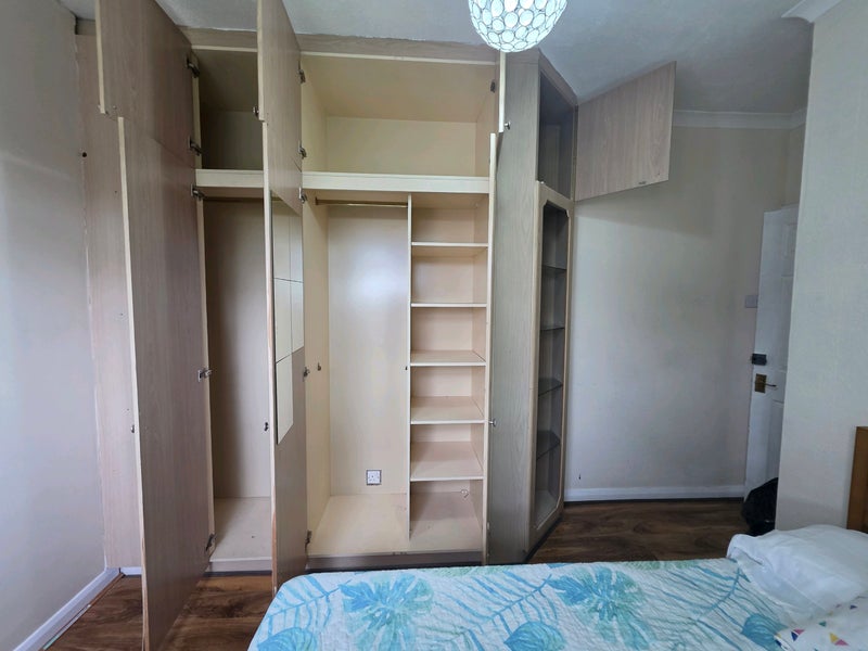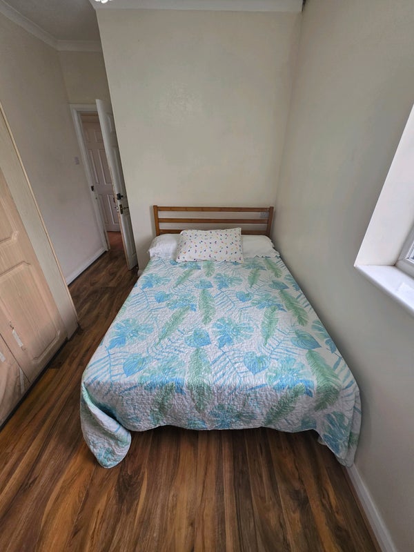 Renting a double bedroom in a lovely, clean house with two toilets, big cupboard space, WiFi, new appliances (washing machine, microwave, new cooker), and sharing a fridge with only one person.