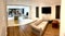 The kitchens are fully equipped with a gas (or induction) hob, double oven, and several large fridges and freezers. The living room area has a 58 inch Samsung Smart TV, coffee table and two large Chesterfield sofas, along with a separate dining table and benches.