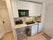 Compact kitchenette with hob, microwave, fridge, and storage