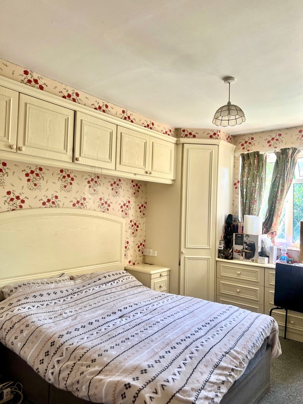 Bright and cozy double bedroom ideal for a couple available in a friendly shared house in Uxbridge. The room features built-in wardrobes and storage cabinets, a comfortable double bed, and large windows for plenty of natural light. Tastefully decorated with a floral theme, it includes its own private WC and a sink. Located in a quiet residential area with easy access to local shops, transport links, and Brunel University. Ideal for couple professionals and/ or students.