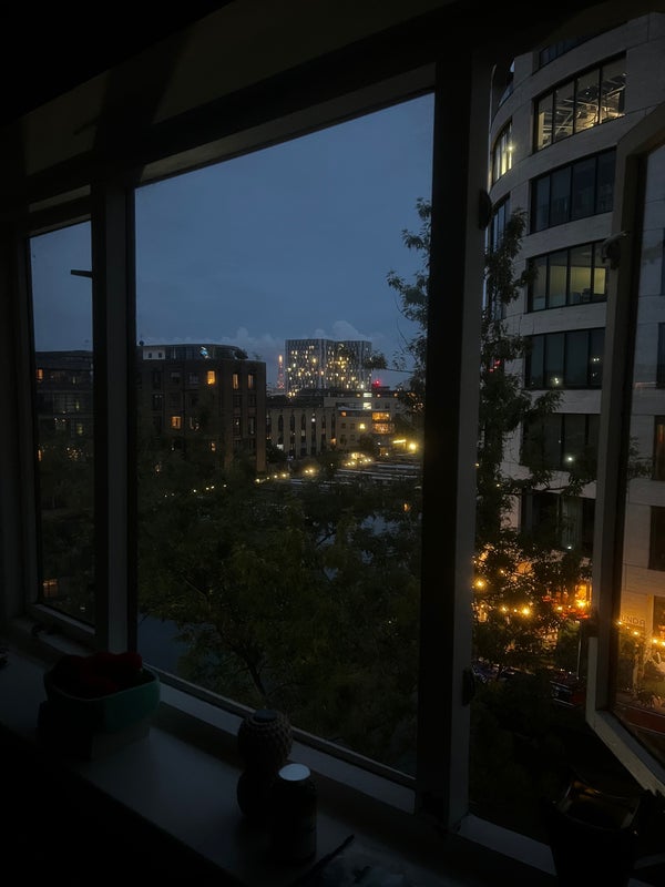 - The room is bright and spacious, facing Regent’s Canal, with views of the London skyline (including the Shard!).