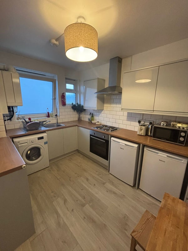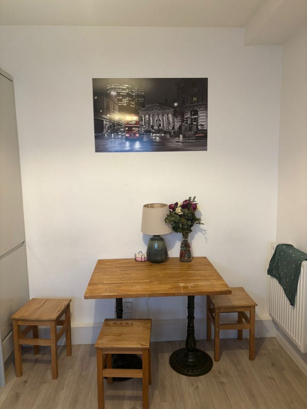 We're two girls (20yo + 21 yo), one of us a second year at UCL and one of us a full time pastry chef (so expect delicious things brought home). We're bubbly and outgoing, but chill :) Our flat is 3 bed, one bath, separate kitchen and living room, 5th floor so we have a view and a cute balcony (west facing, so we get the sunset looking out). Everything inside feels modern and recently refurbished, and we keep it clean and tidy (with fresh flowers because everyone needs fresh flowers). Water bill paid upfront for half the year, other bills + Wifi paid monthly. If student, no council tax -- if not a student, council tax band C (but discounted because one of us is a student). 5 mins from Mornington Crescent, 20 mins walk to UCL, super close to Regents Park.