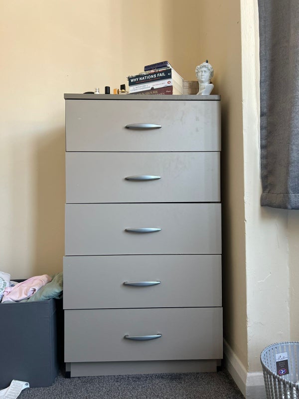 Spacious double room with natural light, as shown in the images. It comes with the bed (cot+mattress inclusive), mattress protector, two cupboards and 2 5-chested drawer. Smaller furnishings include a full-body mirror, pillows, a dustin, a laundry basket, etc.