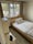 Spacious and attractively decorated. Double bed, large wardrobe with glass sliding doors, desk and chair, duvet and pillows — all included. En-suite bathroom. Morning light pours in.