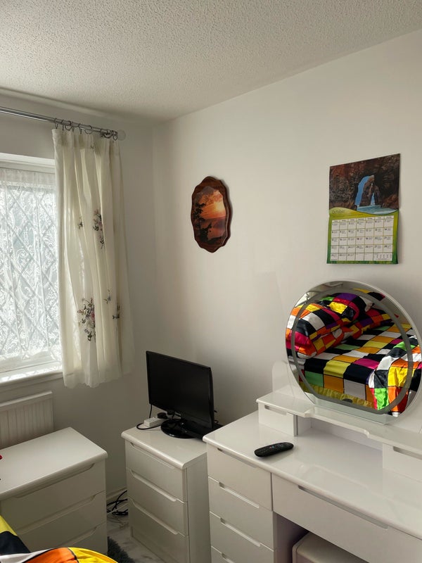 The room and bathroom have recently been decorated to a high standard, and has a light ,airy feeling. Your room will have a television, wardrobe and chest of drawers (as pictured). There is also a lounge and a lovely garden should you wish to relax.