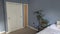 The bedroom includes a double bed, bedside table, desk, drawers, wardrobe and cupboard space. Living area and kitchen are open plan and there is also a private balcony.