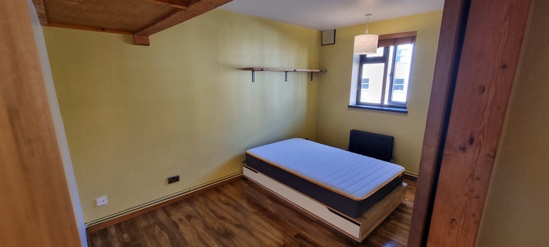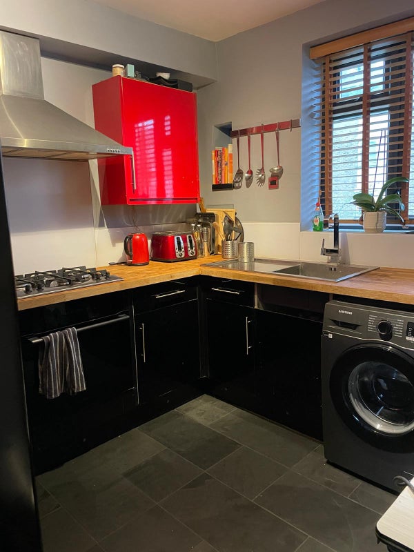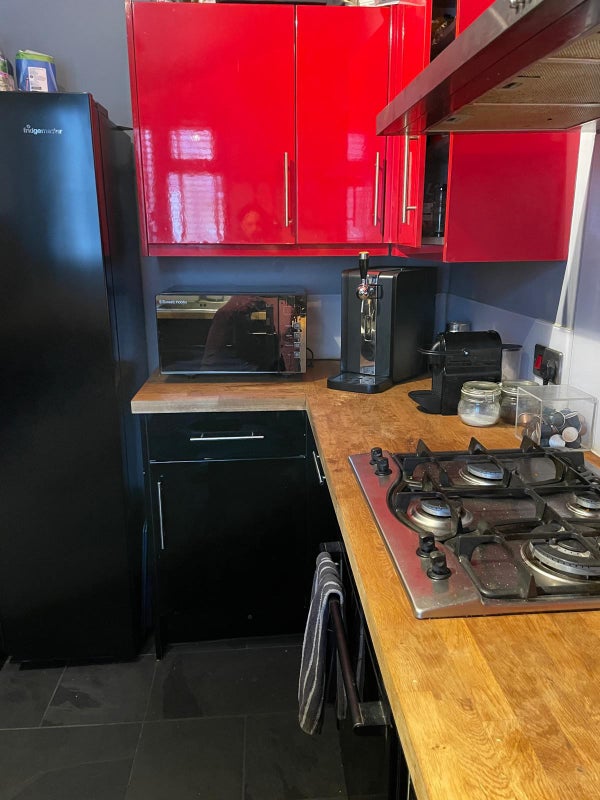The room has been recently redecorated with a brand new bed and mattress. The kitchen has lots of space for storage, with a large fridge freezer. There’s a communal outdoor area with space to dry laundry.