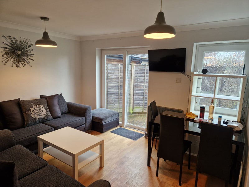 Fully furnished. Shared fully equipped kitchen, living room with smart TV, family bathroom. lovely garden (with shed and garden furniture etc).