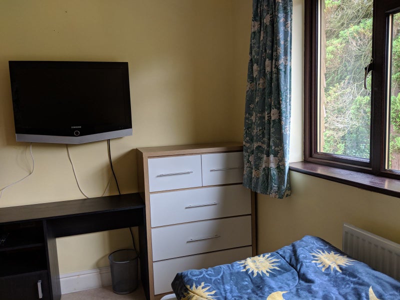 Large sunny south facing room with single bed and beautiful country views in a large comfortable family home. Including useful private kitchenette and adjacent bathroom. Room includes single bed, large flat screen TV, plenty of storage and small a kitchenette with sink, fridge, microwave-grill, The adjacent bathroom is shared with one other lodger. There is off street parking. Worplesdon station is 5-10 mins walk. Good train service to London Waterloo 30 mins and easy access to Woking and Guilford town centre. Woking 5 mins drive and Guildford 10 mins drive.. This is a large 5 bedroom 3 bathroom family home in a quiet rural location. It is a peaceful and friendly home where individual privacy is respected. Please reply with a small introduction about yourself and your occupation. Together with an approximate idea of how long you envisage needing the room.