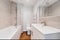 - Modern bathroom with bath, overhead shower, sink and toilet