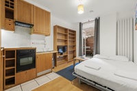 Modern studio apartment located in a Victorian style property, self contained, open plan fitted kitchen with oven/cooker/fridge/microwave, en-suite shower/WC with heated towel rail, presented in excellent condition, neutral décor, fully furnished, wood floors, free wifi, free shared laundry facilities.