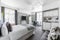 Kitchenette Corner: Includes a sink, mini-fridge, storage, and kettle—ideal for light meal preparation.