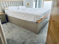 A large modern en-suite room with king size ottoman bed, bedroom furniture, floor to ceiling mirror, and connection points for virgin/ Sky/ freeview tv. Comes with chest drawer, bed side tables and own bathroom.