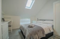 The large double bedroom includes a double bed with quality mattress, wardrobe, drawers, desk and tv stand. The communal accommodation includes a bright and welcoming lounge, dining area and newly fitted kitchen with integrated appliances (induction hob, oven, dishwasher, fridge and freezer). There are 2 shower rooms and a separate utility room with washing machine. This upper floors duplex benefits from a private entrance and a paved front yard area.