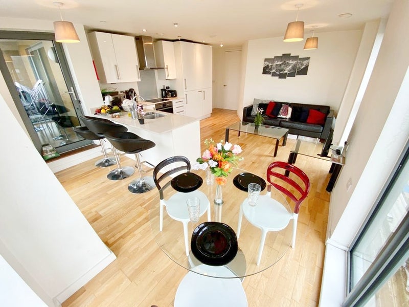 The property features a high-quality modern open-plan living space 🏡, including a fully equipped kitchen and large living room. The kitchen comes with modern appliances and plenty of space for cooking, while the living area is stylish, comfortable, and filled with natural light thanks to the large windows.