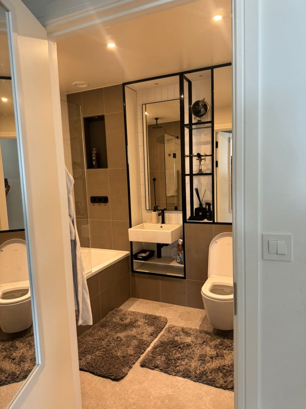 Flat shared with 2 other girls, total 3 bedrooms. Nice, calm environment.