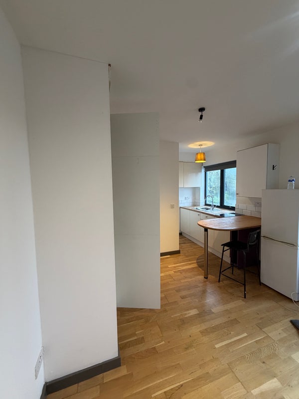 The 30 square meter self contained unit consists of a kitchen and breakfast bar, adjacent to this is a open space in which the user could create there own bed( we do supply a bed frame for a single bed) /living room. The room has a modern en-suite which holds a toilet , standing shower and sink with storage on the top and bottom