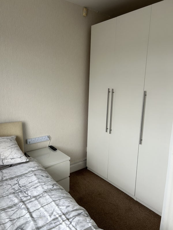 The room has a single bed with Triple Wardrobe, cabinet and tv, plus free broadband. The house is in excellent decorative order with all possible amenities i. e. microwave, Electric cooker fridge/freezer, dishwasher, washing machine & tumble drier available for use. Clean modern bathroom, with power shower and a beautiful garden to relax in.