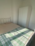 The room comes with a double-size bed, IKEA wardrobe, dressing table and chair
