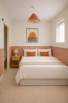 Comfortable double bed with modern, neutral décor