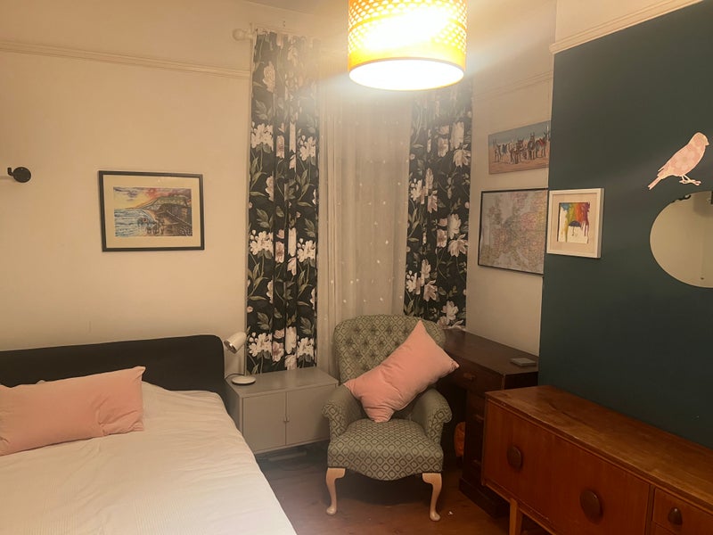 Ideal for professional woman or students. LGBTQ plus friendly. This is a relaxed household, with a cute but shy cat. Mainly occupied by owner with University daughter staying frequently. Large garden to sit in when the weather is a bit nicer. Comfortable furnished double room with desk, TV, plenty of shelving and room to move. All kitchen utensils/pots and pans available for you to use. We are vegetarian but don’t mind if you aren’t. Good location near bus stops in Clive Vale. Walkable to Ore shops/old town. Parking nearby on street. References required please.