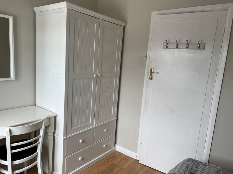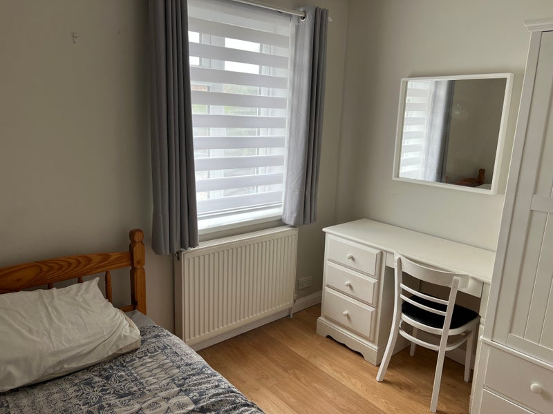 A lovely bright and tastefully decorated single room available in a household with two other housemates. This particular room is on the middle floor and has a toilet and bathroom that will be shared with one other female on the same floor.
