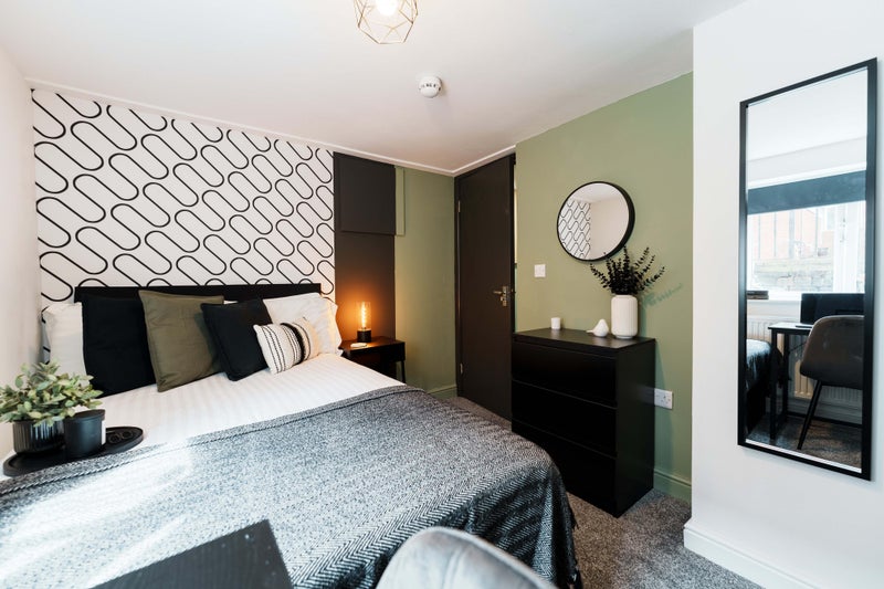 Bright, modern double rooms with wardrobe space, drawers, bedside table, desk & chair, plus under-bed storage. Comfortable bed for a great night’s sleep. Shared access to 2 toilets & 2 showers.