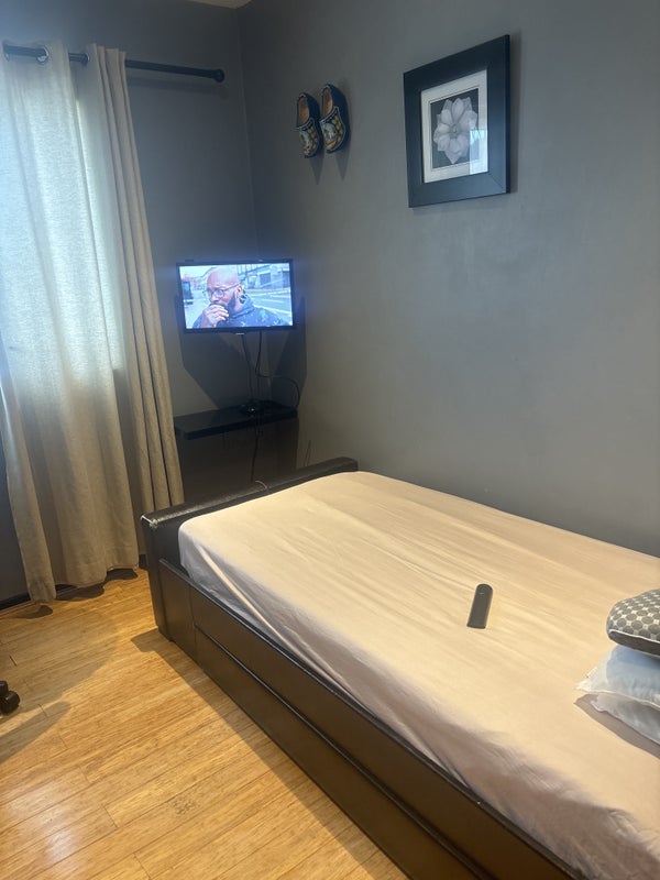 This room has a single bed and mattress, excellent storage