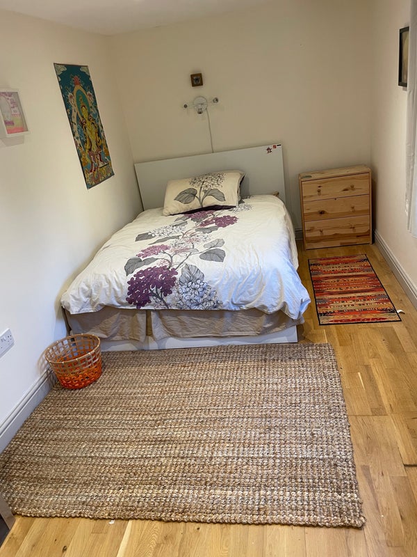 A bright and spacious double room to rent in a wonderful south-facing house, with good storage for clothes and personal items.