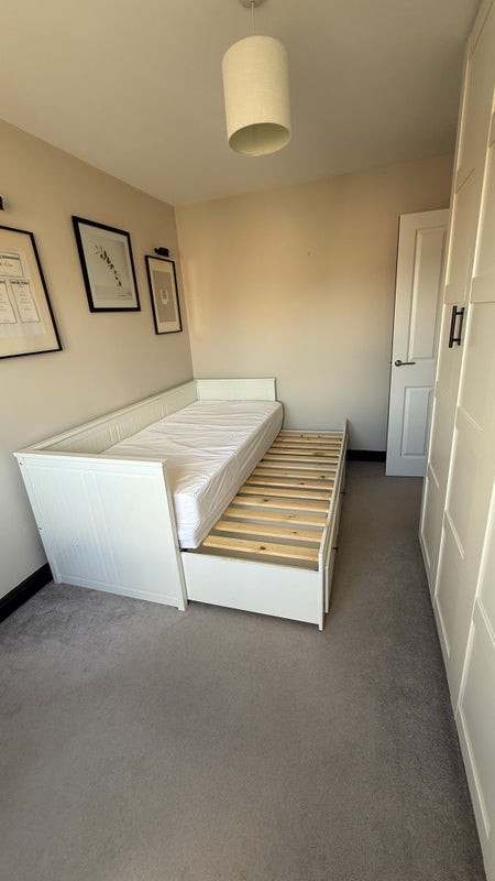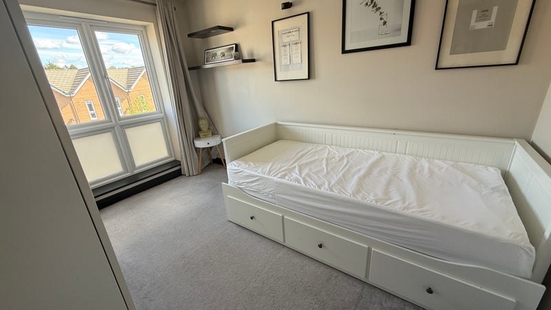 Large double en suite room in Apsley, Hemel Hempstead. The room comes with a full bathroom for use by the tenant only. The bed can be made to desired size, single, 4ft or full double. There are double wardrobes with lots of hanging & draw space. The house is a very large & spacious townhouse. Built on the grand union canal In a private road, very quiet with private parking. The house is stunning with beautiful views of the canal. Big lounge with balcony. Large kitchen diner overlooking the water. It’s really peaceful & 10 mins walk to station / the papermill pub / Darcy’s.