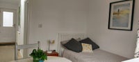 This is a recently built exstension room with a brand new ensuite bathroom. This downstairs room also has a separate access door. It overlooks the garden and pond. But has no access to the garden. There is a small shared utility room with a microwave and a few cupboards. Suitable for heating meals.