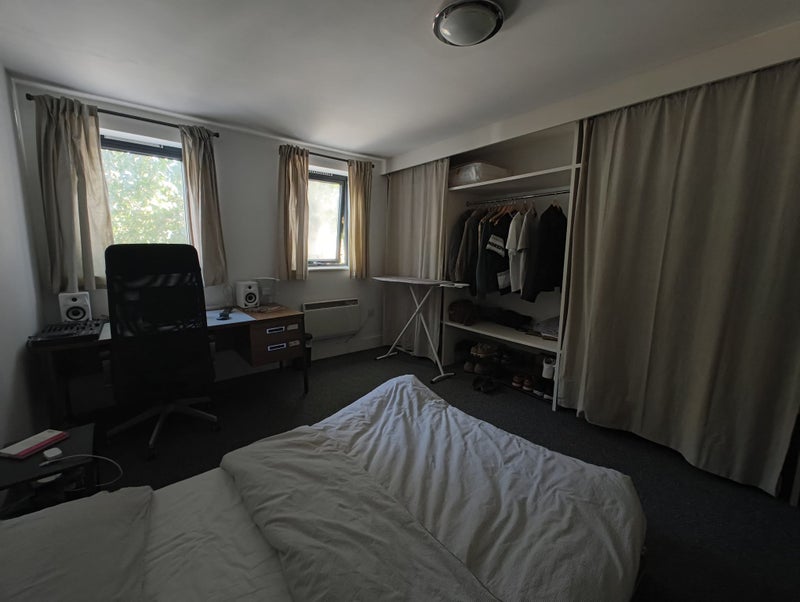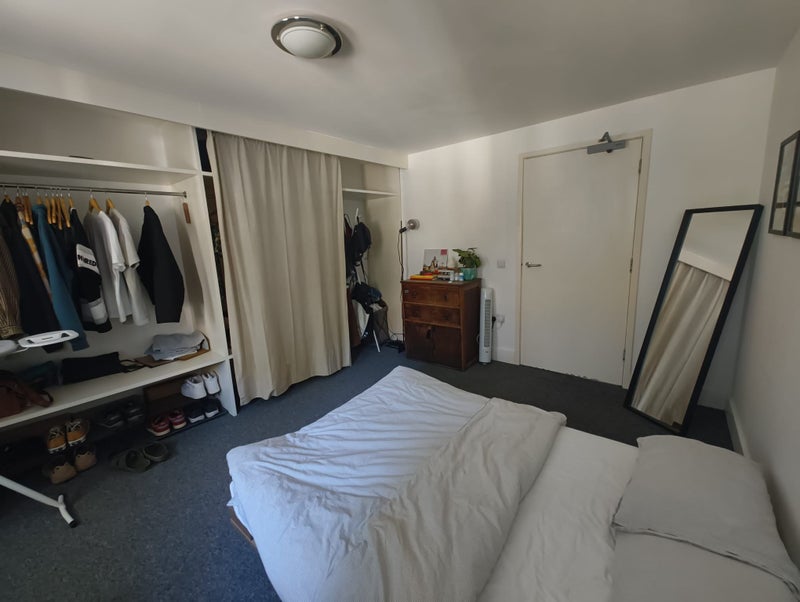 The room comes furnished, with a large desk, bedframe and mattress (the latter two are only a year old). Lots of built-in storage. The previous tenant can even leave washed towels and bed linen if you would like. (The photo of the room contains the previous tenant's things; these will be removed.)