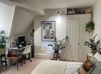 Large, spacious double room on the top floor of a friendly flatshare in Herne Hill. The room is on its own floor with a bathroom directly next door, so it feels almost like an en-suite setup.