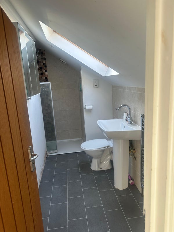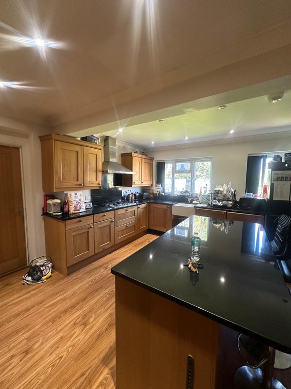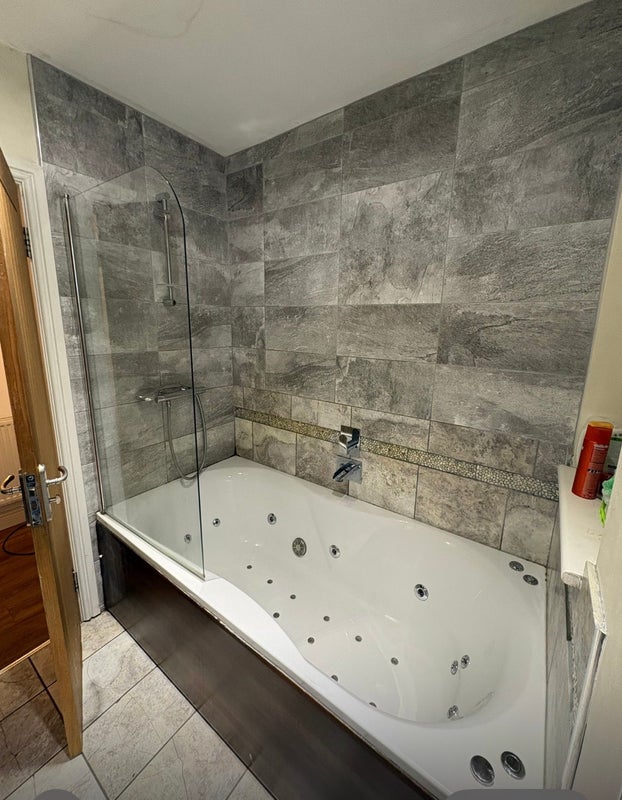 High spec bathroom with spa bath and lovely kitchen with marble worktops and cosy living area.