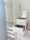 Furnished Single room with single wardrobe, single tall set of drawers, desk, chair, under bed storage, shelves.