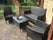 Kitchen double doors lead out from the kitchen to a sunny garden with paved area, seating, outdoor sound system, grassed area, herb garden and shed for bike storage and tools.