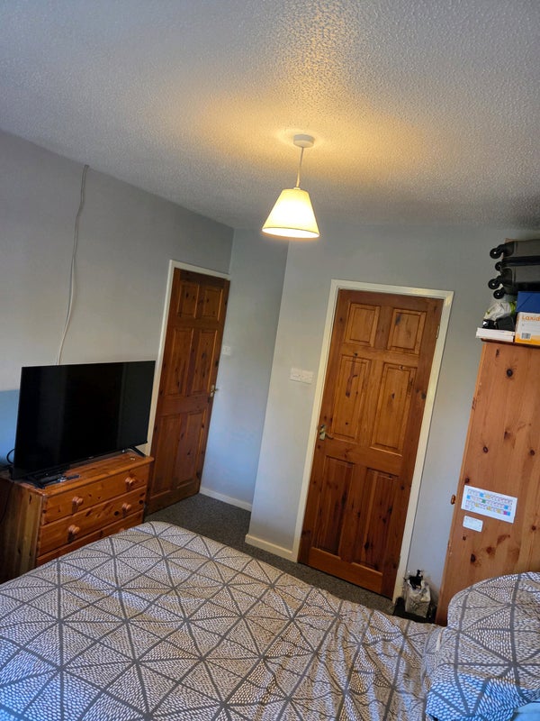 Double downstairs room with ensuite shower room available to rent in centrally heated shared bungalow. Shared kitchen with dining area and shared living room with TV.