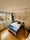 Furniture includes large double bed, 2 bedside tables, desk and chair, mirror, wardrobe, clothing rack, and shelving. Option to buy King Size bed (as seen in later photos) from me.
