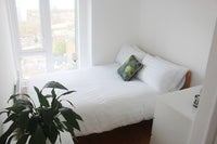 The flat is on the top (9th) floor of a modern apartment block in the heart of Hackney. It's modern and clean with a double aspect living room/kitchen with amazing views over London and a large south facing balcony with an outdoor sofa.